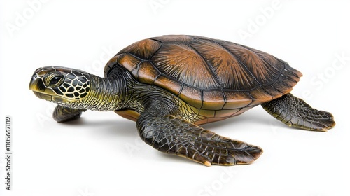 Fototapeta premium Graceful Green Sea Turtle Swimming Underwater in Tropical Ocean Environment