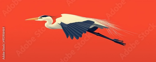 © Georgii, Obraz premium Graceful heron flying against a vibrant red background illustration