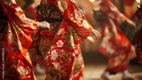 © Omias, Naklejka premium Graceful Japanese Traditional Dance Performance with Elegant Kimono-clad Dancers
