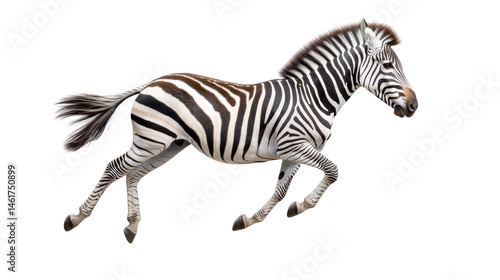 Fototapeta premium Graceful jumping zebra displaying unique black and white striped pattern in...