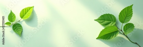 © Pusit, Obraz premium Graceful leaf placement against plain background, elegant, leaf shapes, shadows