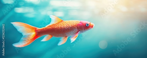 © Worldwide, Naklejka premium Graceful orange goldfish swimming underwater with vibrant colors
