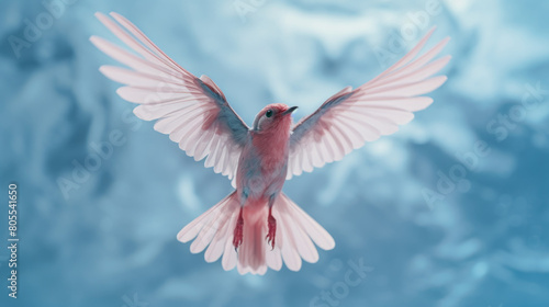 Obraz premium Graceful Pink and Blue Bird in Flight with Spread Wings