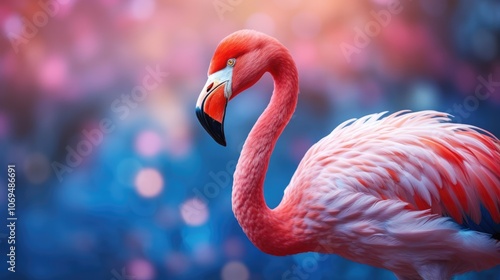 © Gen99, Obraz premium Graceful Pink Bird in Close-up, Wildlife Nature Shot