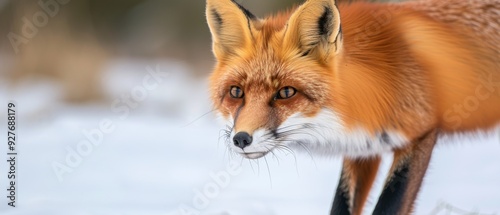 © Noppakun, Fototapeta premium Graceful Red Fox Hunting in the Snowy Wilderness of Siberia