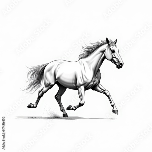 © Tridity Imagine, Obraz premium Graceful Running Horse – Realistic Black and White Line Art with Dynamic Movement