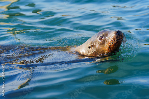 Fototapeta premium Graceful Sea Lion Swimming In Calm Waters Of Oceanside