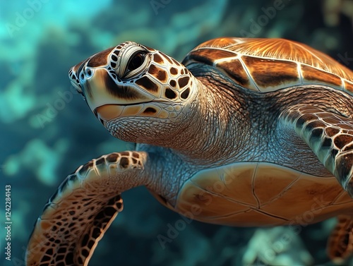 Fototapeta premium Graceful sea turtle swimming peacefully in the clear turquoise ocean water