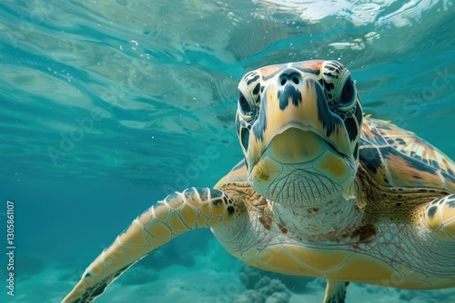 © vuang, Fototapeta premium Graceful sea turtle swimming underwater