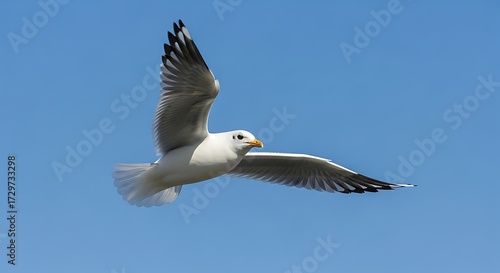 © Zaenab, Fototapeta premium Graceful seagull soaring freely in a clear blue sky on a bright day.