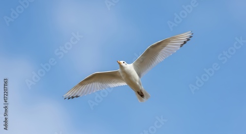 © photoplotnikov, Obraz premium Graceful seagull soaring in clear blue sky capturing freedom and serenity
