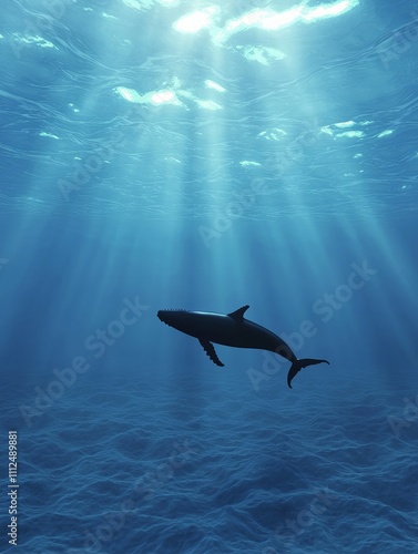 Fototapeta premium Graceful shark gliding through sunlit waters ocean depths underwater...