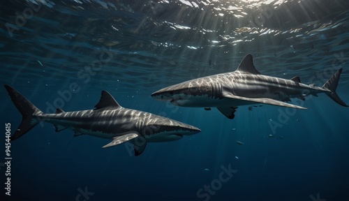 Fototapeta premium Graceful Sharks Underwater Encounter