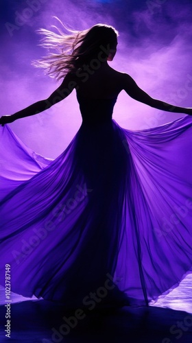 © Sataporn, Fototapeta premium Graceful Silhouette in Flowing Fabric Danced Against Pastel Gradient Backdrop