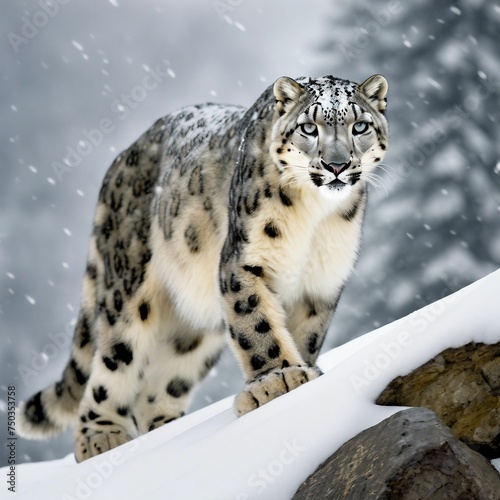 Obraz premium Graceful Snow Leopard Roaming Majestic Snowy Landscape