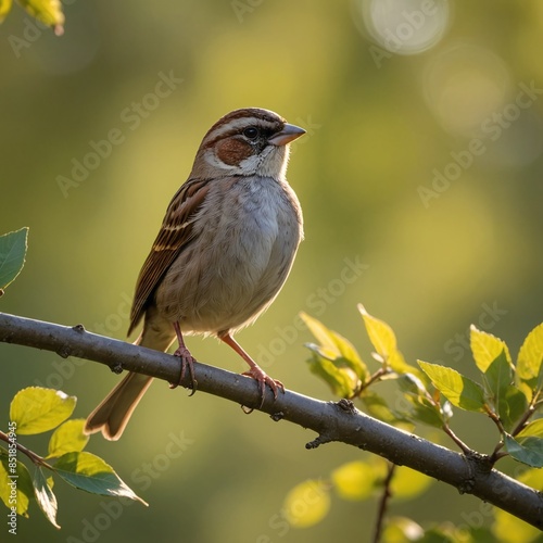 © GMeta, Fototapeta premium Graceful Sparrow Perched on Sunlit Branch at Dusk