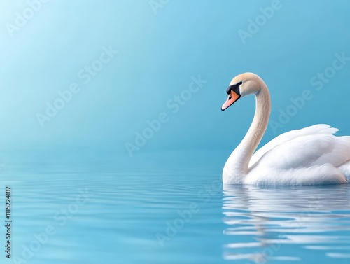 © tantawat, Obraz premium Graceful Swan Gliding on Calm Water Against Serene Blue Background