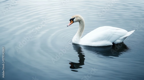 Naklejka premium Graceful swan swimming in a serene lake with gentle ripples for calm nature...