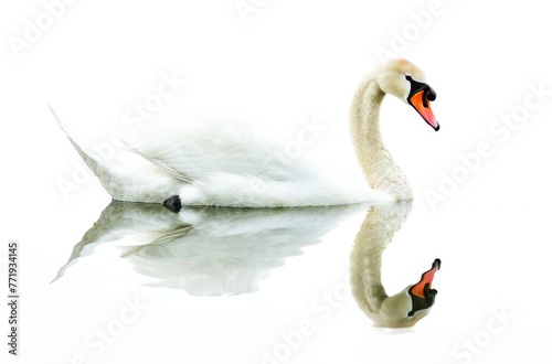 Obraz premium Graceful Swan Swimming on Calm Water, its Reflection Visible, Isolated on...