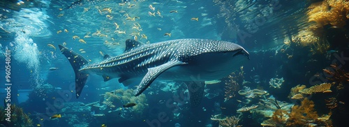Fototapeta premium Graceful Whale Shark Gliding Through Ocean Depths