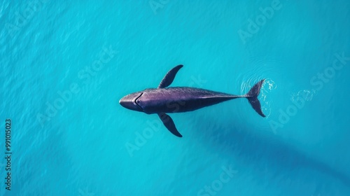 Fototapeta premium Graceful Whale Swimming in Turquoise Waters