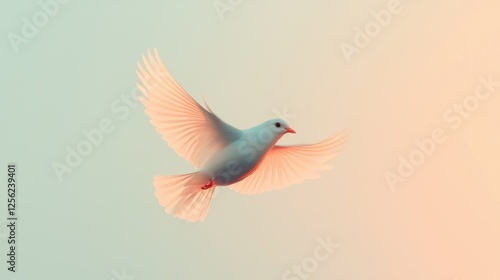 Fototapeta premium Graceful white bird in flight open sky nature serene environment close-up view freedom concept
