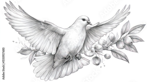 © Mundhut, Fototapeta premium Graceful white dove with fruit branch