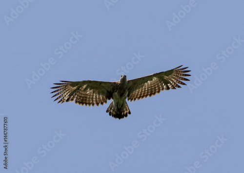 © Tareq, Obraz premium Graceful wings spread wide, changeable hawk eagle soars through sky.