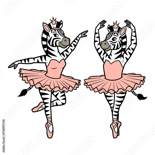 Obraz premium graceful zebra ballerina character design, ballet dancer animal illustration
