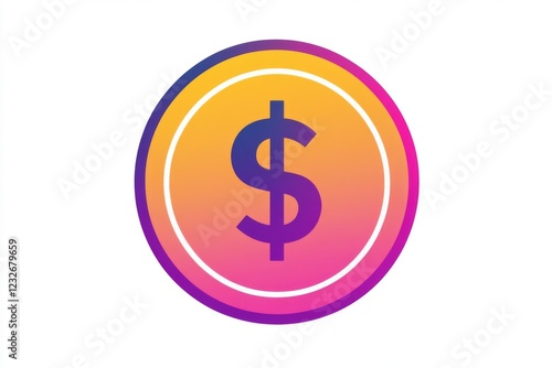 Fototapeta premium Gradient coin with purple and orange dollar sign