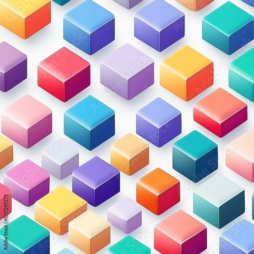 © NAIMAH, Obraz premium Gradient cubes Isometric view shows arranged pastel colored blocks