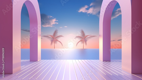Fototapeta premium Gradient empty room wall model, minimalist interior, podium 3D product display