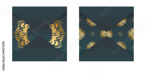 Fototapeta premium Gradient green greeting card with Greek gold ornaments prepared for typography.
