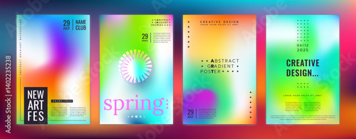 © Natalia, Fototapeta premium Gradient green poster set. Background abstract, design template for event. Fluid shape, minimal modern layout for presentation. Summer creative cover. Vector banner dynamic forms backdrop collection