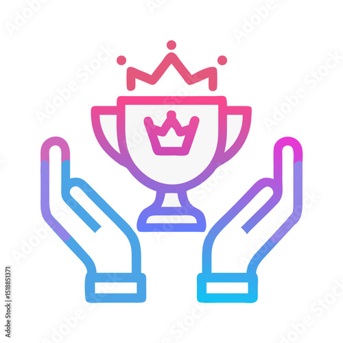 Obraz premium Gradient Hands Holding Crowned Trophy Icon