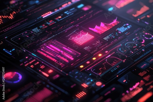 © Black Bunny, Obraz premium Gradient holographic interface projecting floating business data charts
