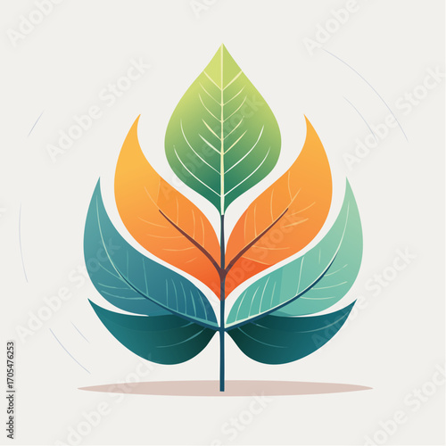 © Lina, Fototapeta premium Gradient Leaves With Swirls on Light Gray Background