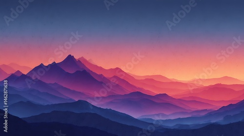 Fototapeta premium Gradient mountain range landscape. Horizon view