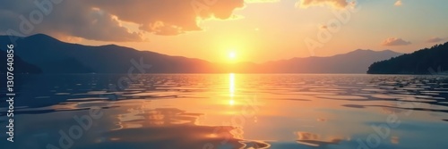 © Phetthanousack, Naklejka premium gradient silver light reflections on lake surface at sunrise, aquatic environment, serene landscape