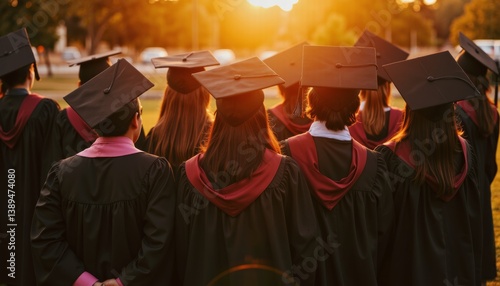 Obraz premium Graduates celebrating achievement during sunset ceremony