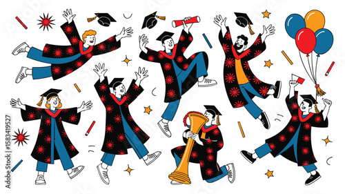© Mahfuz, Fototapeta premium Graduation Celebration: Joyful Graduates Jumping and Celebrating Success