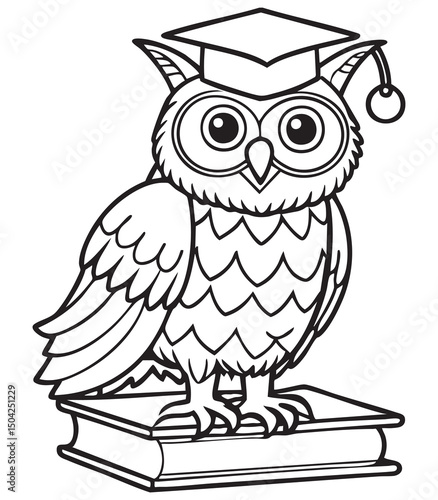 © MDBELLAL, Fototapeta premium Graduation owl for coloring page