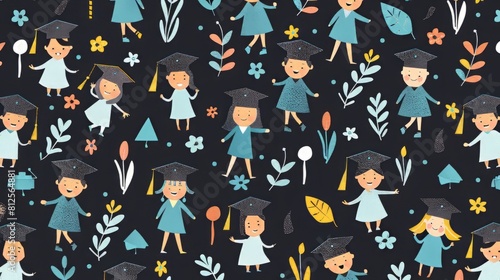 Obraz premium Graduation theme pattern with a repeating design of celebrating graduates