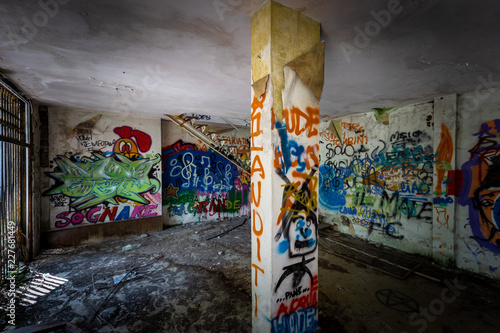 Fototapeta premium Graffiti and views of the abandoned city of Consonno (Lecco, Italy).