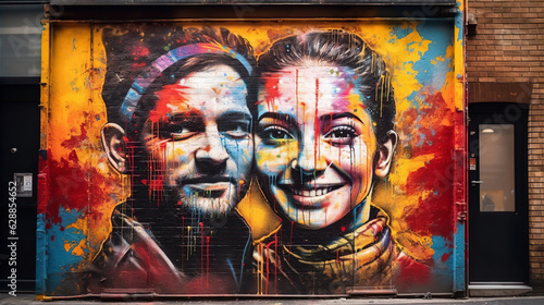 © Custom Media, Obraz premium Graffiti art colorful people - AI generated
