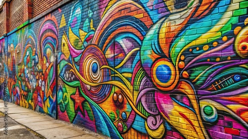 Naklejka premium Graffiti art on urban wall with colorful abstract designs , street art,...