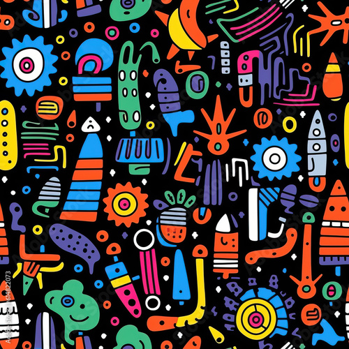 Obraz premium Graffiti art seamless repeat pattern, colorful funky