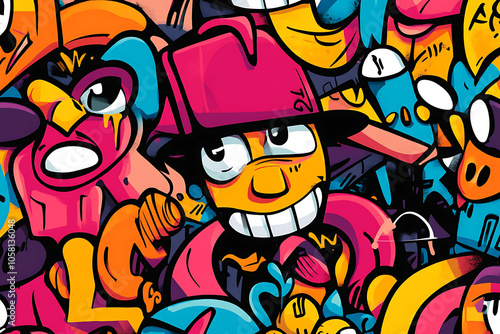 © Robin, Obraz premium Graffiti Characters Seamless Pattern illustration