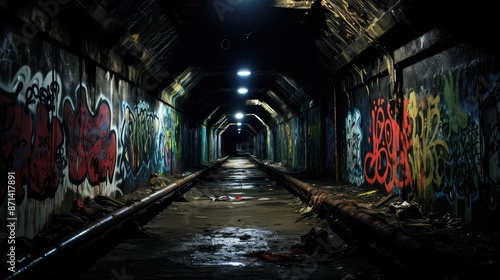 © vectorwin, Fototapeta premium graffiti dark tunnel
