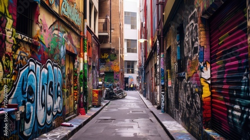 Fototapeta premium Graffiti-Filled Narrow Alleyway Captures Urban Artistic Expression